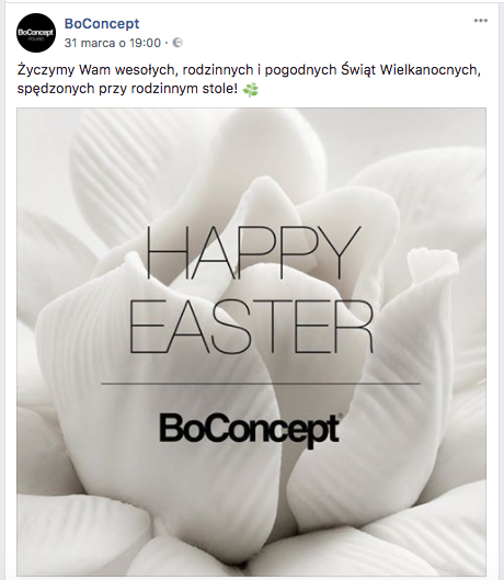 3. Im mniej elementów na grafice tym większa jej zauważalność – Paradoks Hicksa w ujęciu graficznym. Ta prosta zasada ekonomiczna dotycząca zasobów świetnie sprawdza się również w projektowaniu graficznych. Każdy wybór czy też zwrócenie uwagi na element na grafice, którego musi dokonać odbiorca naszego “obrazka” zwiększa czas tego wyboru. W prostym tłumaczeniu: jeżeli na naszym projekcie znajdzie się zbyt dużo elementów, odbiorca z całą pewnością nie skupi na nim uwagi, a samo zapamiętanie informacji, nie mówiąc o skorzystaniu z oferty, będzie dla niego trudne, jeśli nie frustrujące. Teoretycznie zasada ta jest znana wielu grafikom i designerom. Dobrze jest pamiętać o przekładaniu jej na praktykę. Świetnym przykładem jest legendarna już komunikacja marki BoConcept.