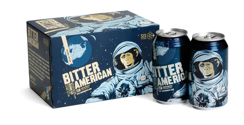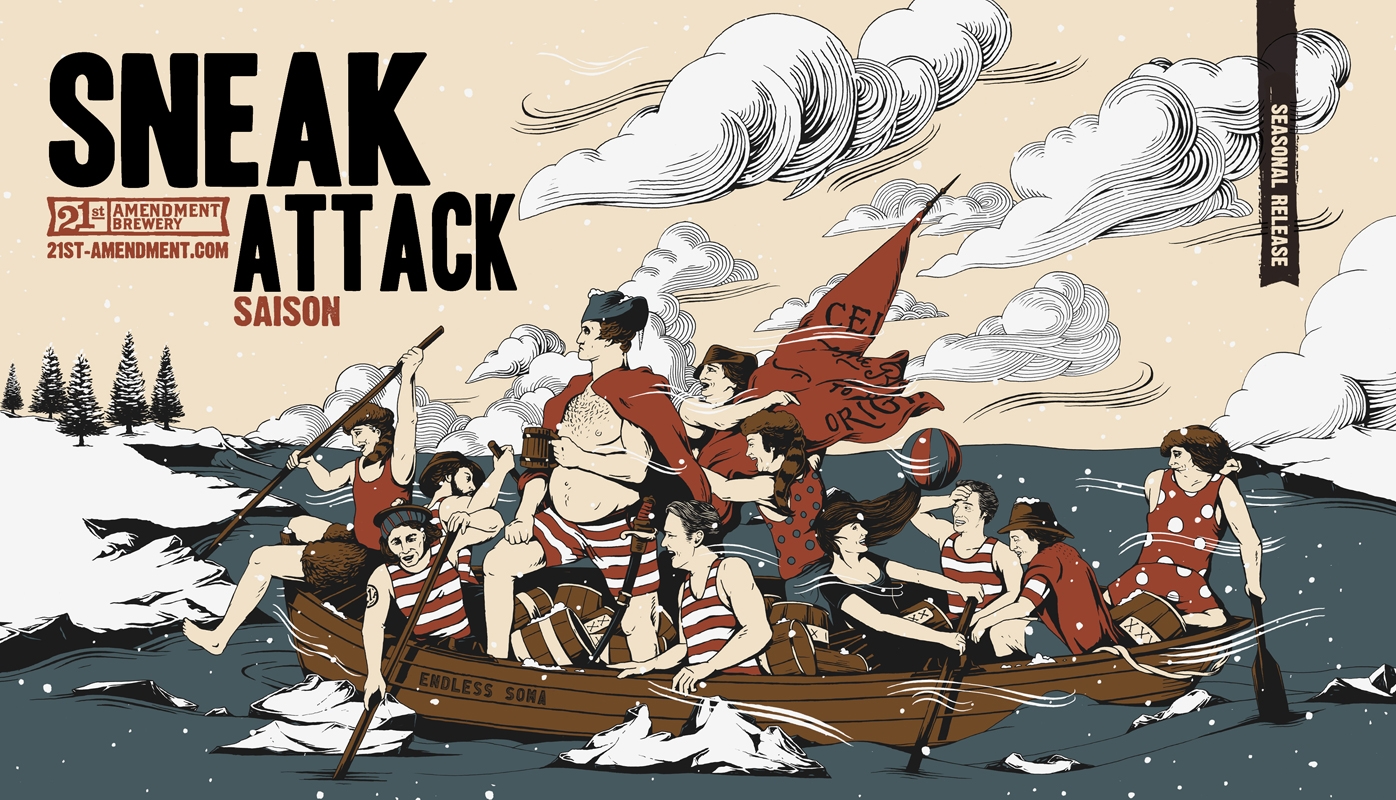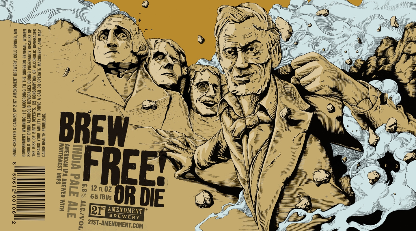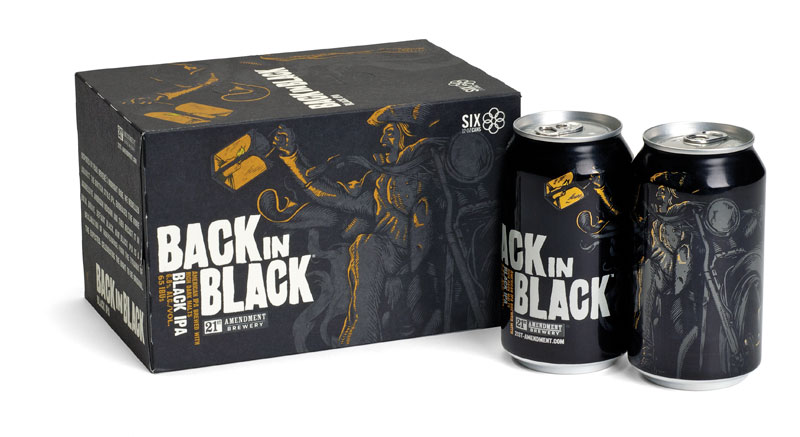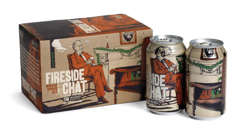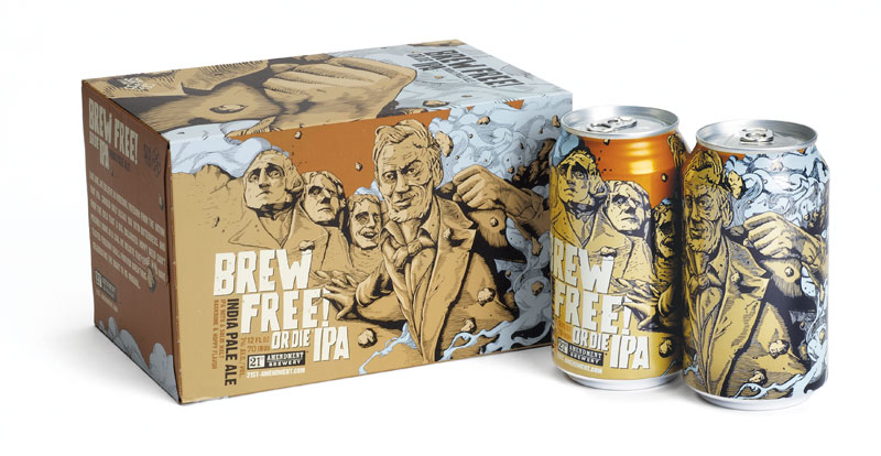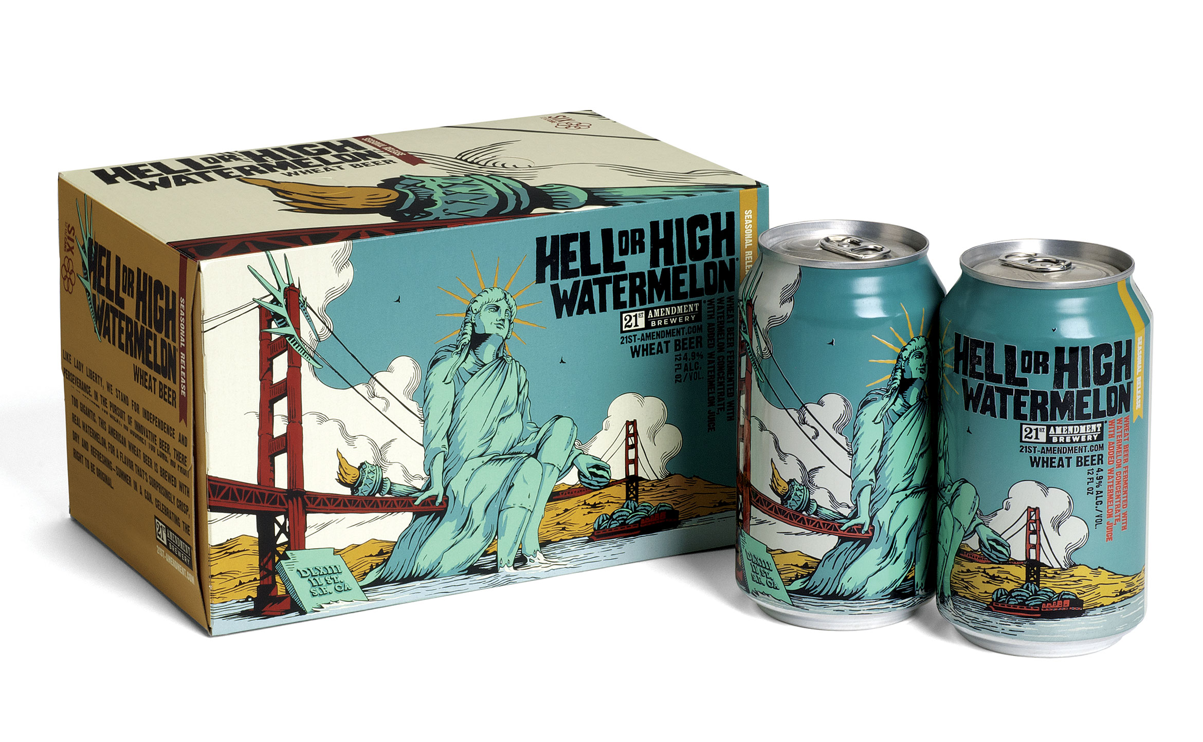 opakowania 21ST Amendment Brewery udanie łączące ilustracje z mocną typografią,