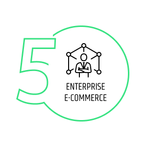 Ostatni zbiór stanowią największe systemy, czyli enterprise e-commerce. Zawierają praktycznie wszystkie mechanizmy niezbędne dla B2C i B2B. Tym samym są to najdroższe systemy, polecane dla największych firm. W tej grupie znajdują takie rozwiązania jak SAP Commerce, Oracle Commerce, IBM Websphere Commerce i Salesforce Commerce Clud.