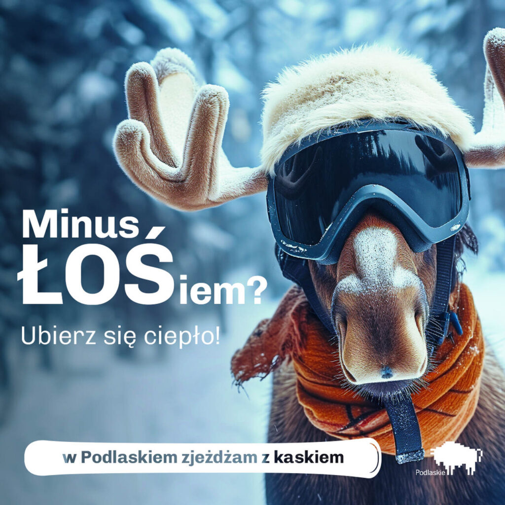 ,,Minus ŁOŚiem? Ubierz się ciepło!” – przestrzega zabawny zwierzak z plakatu promującego województwo podlaskie. To nie pierwsza taka akcja tego regionu Polski. Tym razem, do haseł ,,kask na bezpieczne dROGI” czy ,,broń BOBRZE bez kasku!” i innych humorystycznych powiedzonek odwołujących się do aktywnego spędzania czasu na Podlasiu, dołączyły slogany związane z bezpieczeństwem w zimie.