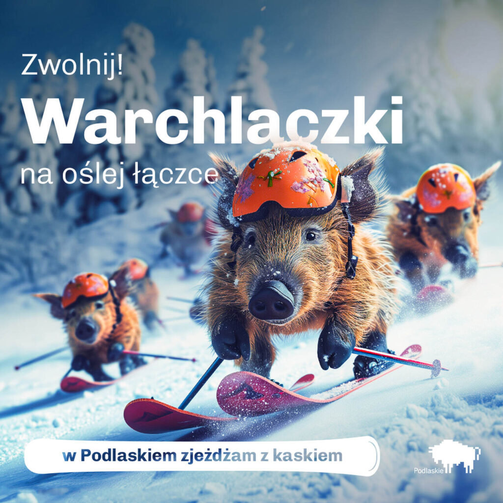 I właśnie do przestrzegania zasad bezpieczeństwa podczas ,,białego szaleństwa” zachęca najnowsza akcja ze zwierzętami w rolach głównych. ,,Zwolnij! Warchlaczki na oślej łączce!” – nawołuje tekst na plakacie, a internauci wprost szaleją za tymi prostymi i wywołującymi uśmiechy na twarzach przekazami z kolorowych grafik.