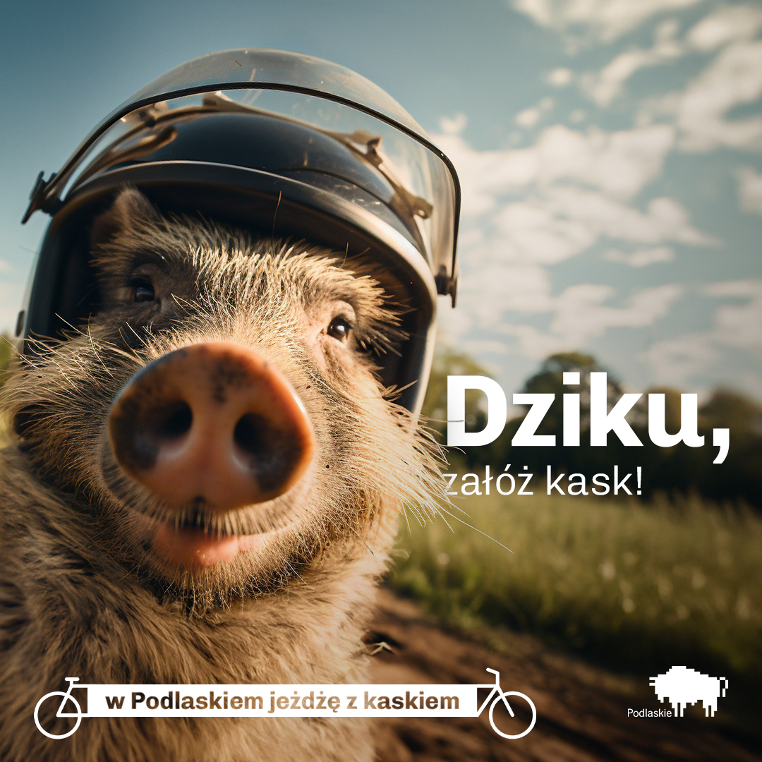 W kampanii „W Podlaskiem jeżdżę z kaskiem” przypomniano o tym, jak ważne jest dopilnowanie tego, by nie wybierać się na przejażdżki rowerowe bez odpowiedniego zabezpieczenia głowy. W akcji wykorzystano grafiki, które pomogła wygenerować sztuczna inteligencja. Możemy znaleźć na nich zwierzęta charakterystyczne dla Podlasia. Są to m.in. bobry, łosie, dziki, wilki czy żubry. Dodatkowo, na każdej z kreacji umieszczono odpowiadające zwierzętom zabawne hasła odnoszące się do tematu bezpieczeństwa. Hasła to, np. „Jedź łóśtrożnie” czy „Dziku, załóż kask!”.