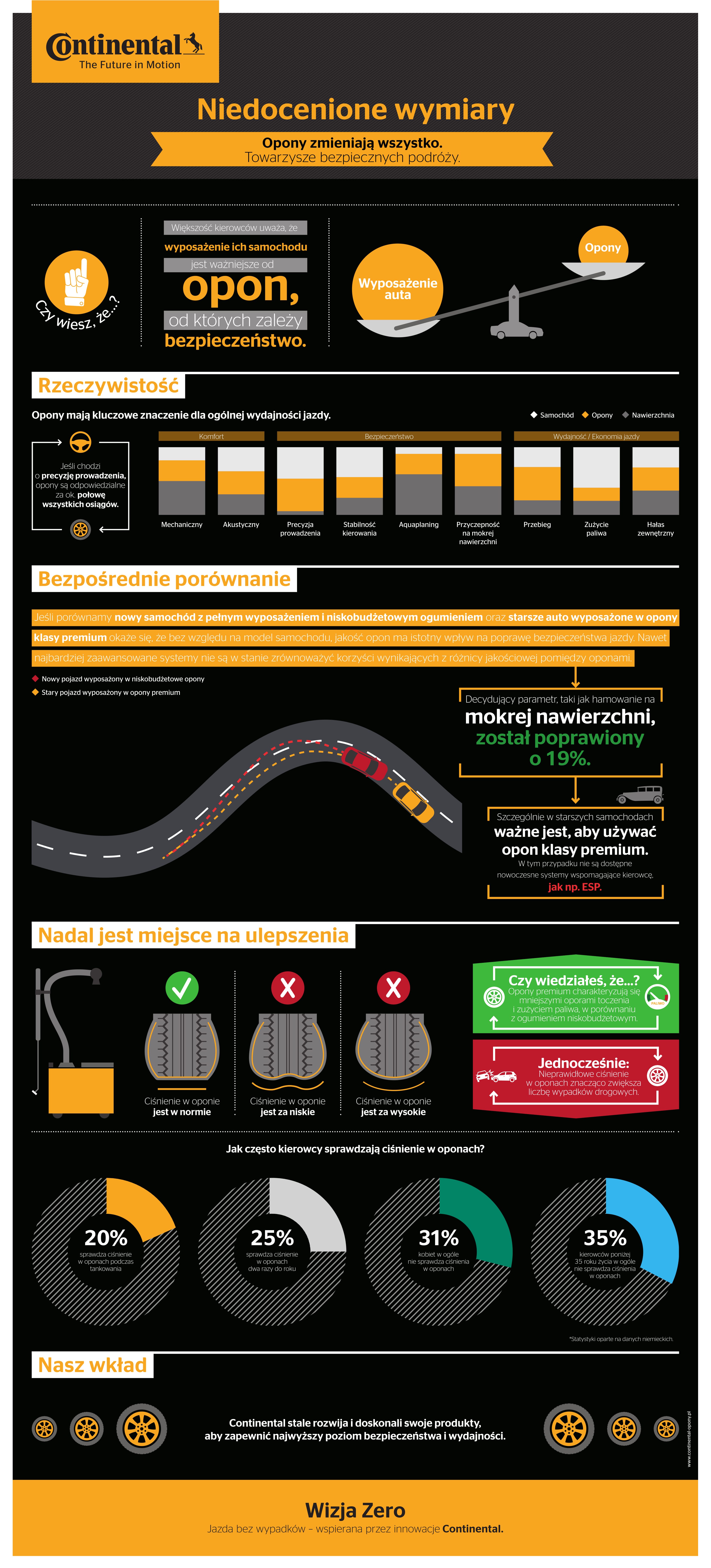 czyli: edukację kierowców, samochodowe systemy bezpieczeństwa, rozwiązania poprawiające jakość infrastruktury drogowej i zaawansowane technologicznie opony. Według Continental na bezpieczeństwo jazdy mają wpływ wszystkie te czynniki, a odpowiedzialność za obecną sytuację na drogach musi być podzielona pomiędzy społeczeństwo, instytucje państwowe i pozarządowe, a także producentów samochodów, systemów bezpieczeństwa oraz ogumienia. Realizacja Wizji Zero jest ambitnym i trudnym zadaniem, ale dzięki holistycznemu podejściu do bezpieczeństwa na drogach, jak najbardziej możliwym do zrealizowania.