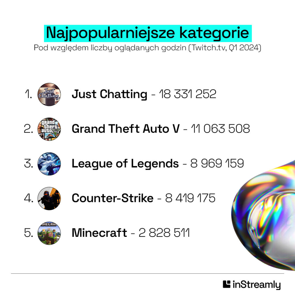 Just Chatting wciąż pozostaje najpopularniejszą kategorią, którą gonią między innymi Grand Theft Auto V czy League of Legends. Warto zwrócić jednak uwagę na gwałtownie zmieniającą się popularność niektórych gier.