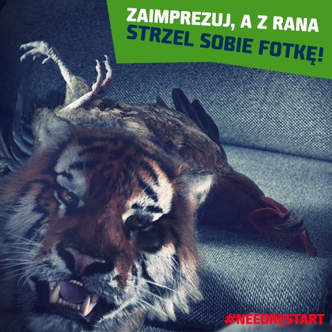 Tygrys – popularny brandhero marki Tiger zaprasza wszystkich swoich fanów do udziału w konkursie. Wystarczy przesłać zdjęcie, na którym uczestnik zobrazuje swój „restart po resecie”, czyli pokaże jak wraca do formy po ciężkiej nocy.