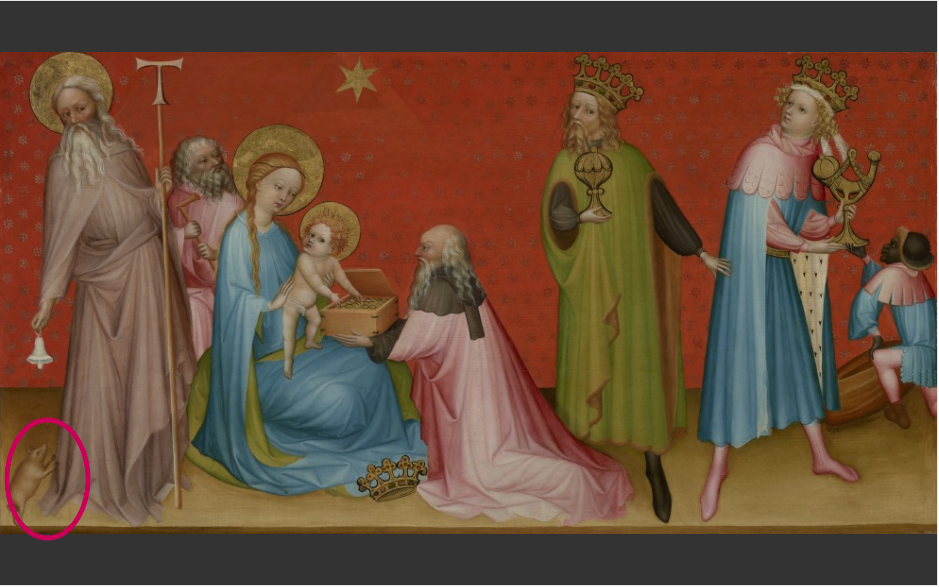 Doskonale rozumieli to muzealnicy z Getty. Na swojej stronie internetowej umieścili opis obrazu Pokłon Trzech Króli. Obraz jest jak najbardziej poważny – nawiązuje w końcu do tematyki sakralnej. Na pierwszy rzut oka opis wydaje się typowy, aż docieramy do pewnego niezwykłego nagrania.