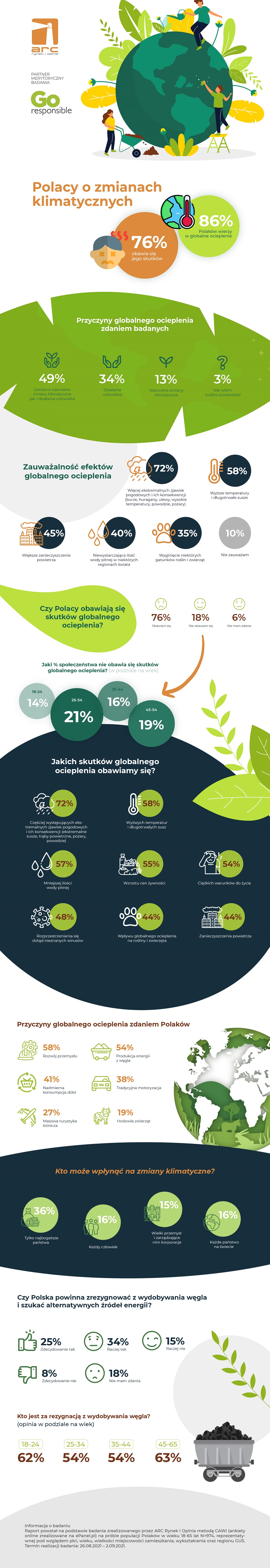 Niemal wszyscy Polacy (94%) w wieku od 18 do 65 lat spotkali się z terminem globalnego ocieplenia i zdecydowania większość wierzy, że jest ono faktem. Połowa badanych obarcza odpowiedzialnością za obecny stan rzeczy naturę oraz działania człowieka. Co trzeci respondent jest zdania, że to ludzie są odpowiedzialni za globalne ocieplenie. W tej grupie większy odsetek stanowią mężczyźni (39%) niż kobiety (28%), jak również mieszkańcy największych miast (42%).