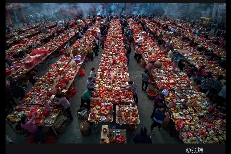 Zhang Wei z Chin i jego zdjęcie „Hometown feast” prezentujące tradycyjną ucztę w jego rodzinnym mieście Longyan City: