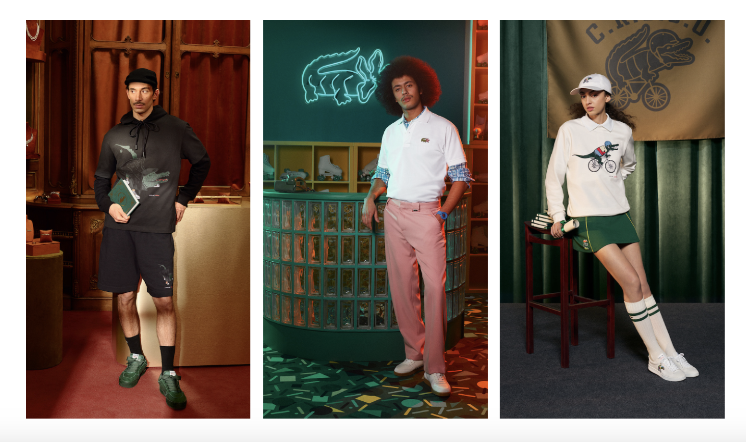Kultowy krokodyl został wkomponowany w serialowe motywy. Możemy zobaczyć go, np. w ogromnej peruce, zgodnie z nawiązaniem do „Bridgertonów”. Dzięki tej współpracy, marka Lacoste może zyskać sympatię wśród młodszych odbiorców.