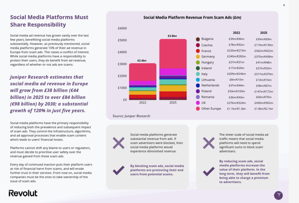 • Reklamy‑oszustwa w social mediach przestały być rzadkością, a zamiast tego stały się monetyzowanym elementem ekosystemu reklamowego. Według raportu Juniper Research platformy społecznościowe w Europie zarobiły w 2025 roku właśnie z takich reklam ok. 18 mld zł, z czego 725 mln zł tylko w Polsce. A dodatkowo? Blisko bilion wyświetlonych reklam typu scam. Czytaj więcej >>