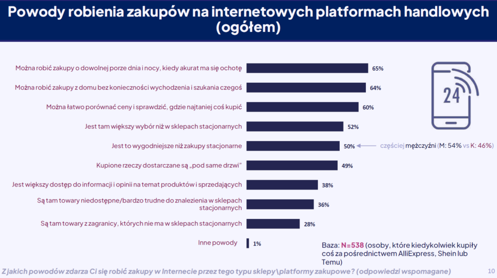 Firma Pollster opublikowała raport pt. „Chińskie platformy handlowe oczami Polaków”. Jak wskazują badania, najbardziej rozpoznawalne i najczęściej wymieniane przez Polaków platformy zakupowe online to Temu i AliExpress, które bez zastanowienia wymienia już co dziesiąty pytany w wieku powyżej 15 latNajczęściej na chińskich platformach kupujemy ze względów związanych z wygodą.