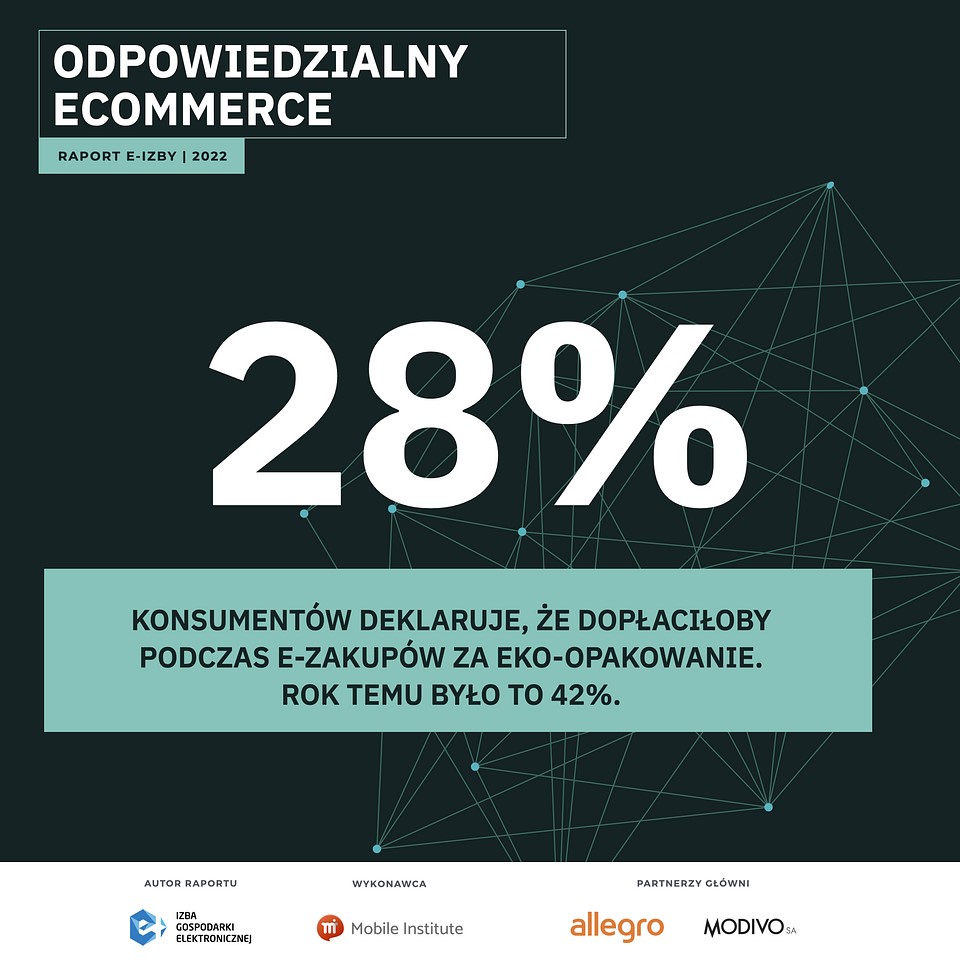Porównując do badania z ub. roku, znacznie wzrosła skłonność e-kupujących do oczekiwania dłużej na dostawę zamówionych produktów, co jest podejściem ekologicznym, nawet jeśli motywacje bywają tu różne. Na pewno połowa z nas poczeka do 3 dni na paczkę, a prawie 2/3 zwróci uwagę na ekologiczne opakowanie przesyłki, (61%, to o 6p.p. więcej niż w 2021 roku). Jednak spada chęć dopłaty za eko-opakowanie, co deklaruje 28% społeczeństwa, podczas gdy rok temu było to 42%. Być może to sygnał dla e-sklepów, by proponować tylko ekologiczne opakowania? – mówi Bartłomiej Wnęk, chief operating officer w MODIVO SA.