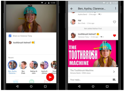 Według nieoficjalnych informacji z serwisu Wired z maja 2016, w aplikacji mobilnej YouTube zostanie dodana zakładka z dostępem do archiwum, w której pojawią się bieżące wiadomości przesyłane pomiędzy użytkownikami. Dostaniemy możliwość udostępnienia wybranego filmu znajomemu lub grupie. Shimrit Ben-Yair, dyrektor do zarządzania produktem w serwisie twierdzi, że w ten sposób użytkownicy będą mogli łatwiej dzielić się filmami z innymi, a także komentować je oraz rozmawiać z jedną osobą lub wewnątrz większych grup. Rozmowy mają być wątkowe, z możliwością wyszukania fragmentu treści.