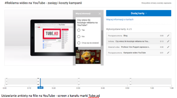 W Menedżerze filmów na kanale na YouTube’ie, oprócz standardowych Kart i Adnotacji, pojawiła się opcja utworzenia ANKIETY wielokrotnego wyboru, którą można zamieścić bezpośrednio w filmie. Kartę z ankietą wstawiamy w dowolnym momencie wyświetlanego filmu oraz śledzimy wyniki w czasie rzeczywistym. Daje nam to możliwość kontaktu z widzami oraz zachęcenia ich do oddania głosu w różnych kwestiach związanych z marką.