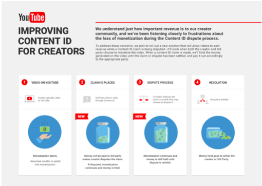 Content ID to program partnerski, pozwalający twórcom wideo (właścicielom praw autorskich) zarabiać na ich filmach. Algorytm wyłapuje treści będące ich własnością, które zawierają materiały.