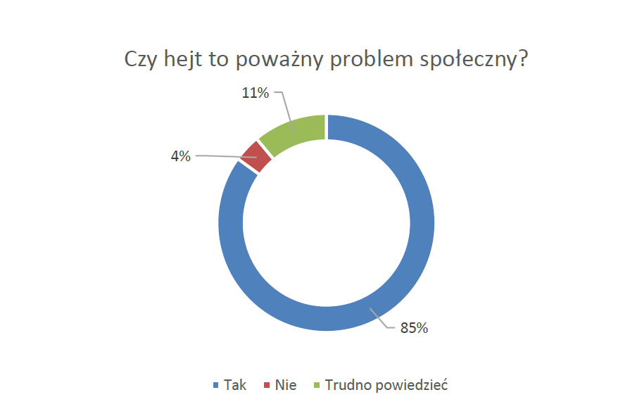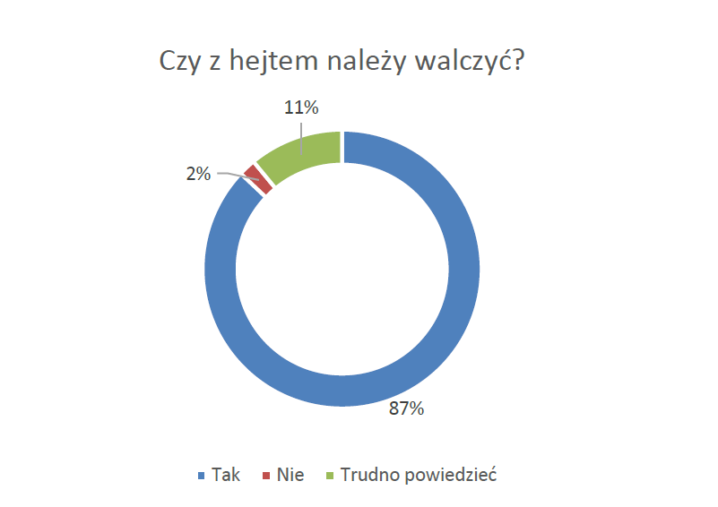 Zdecydowana większość badanych uważa, że z hejtem należy walczyć. Polacy są co do tego zgodni – nie ma tutaj w zasadzie żadnych różnic między kobietami a mężczyznami, osobami młodszymi i starszymi czy osobami z wyższym czy podstawowym wykształceniem.