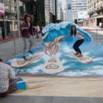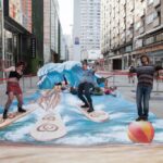 Wakacyjny obraz przedstawiający nowego bohatera kampanii Big Milk – Kraba surfującego po wzburzonych falach został przygotowany w nowatorskiej technologii 3D. Warszawianie chętnie wzięli udział w zabawie i z radością pozowali na tle trójwymiarowego dzieła.