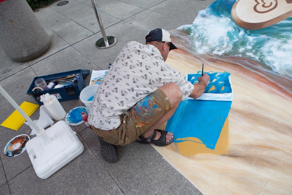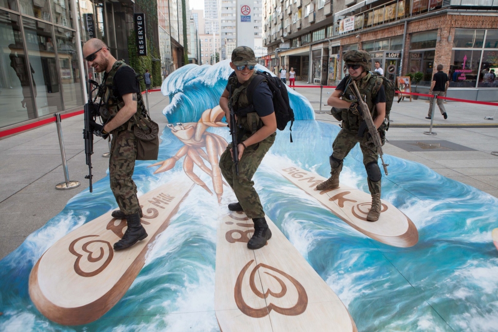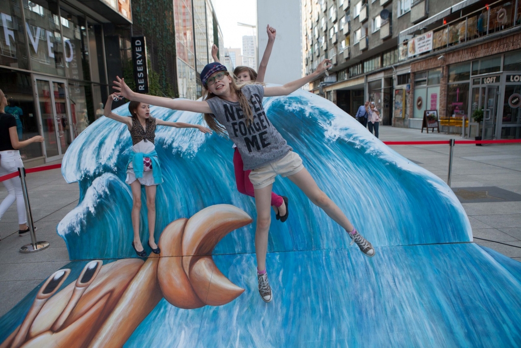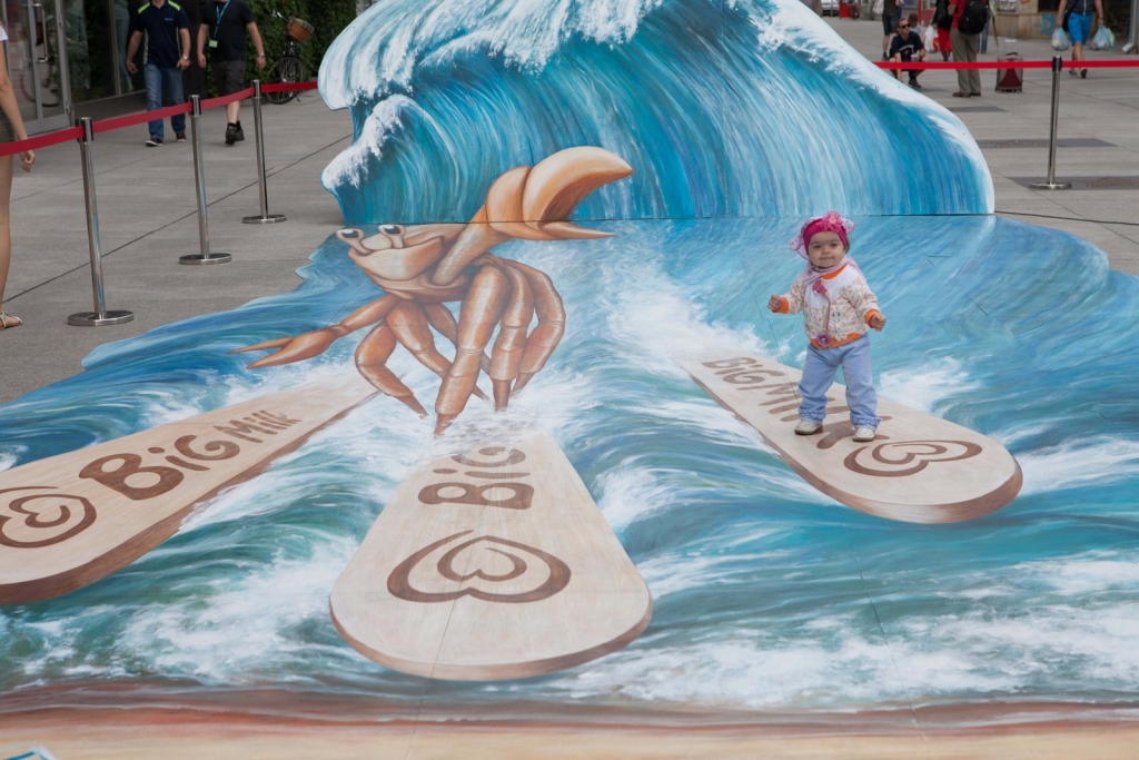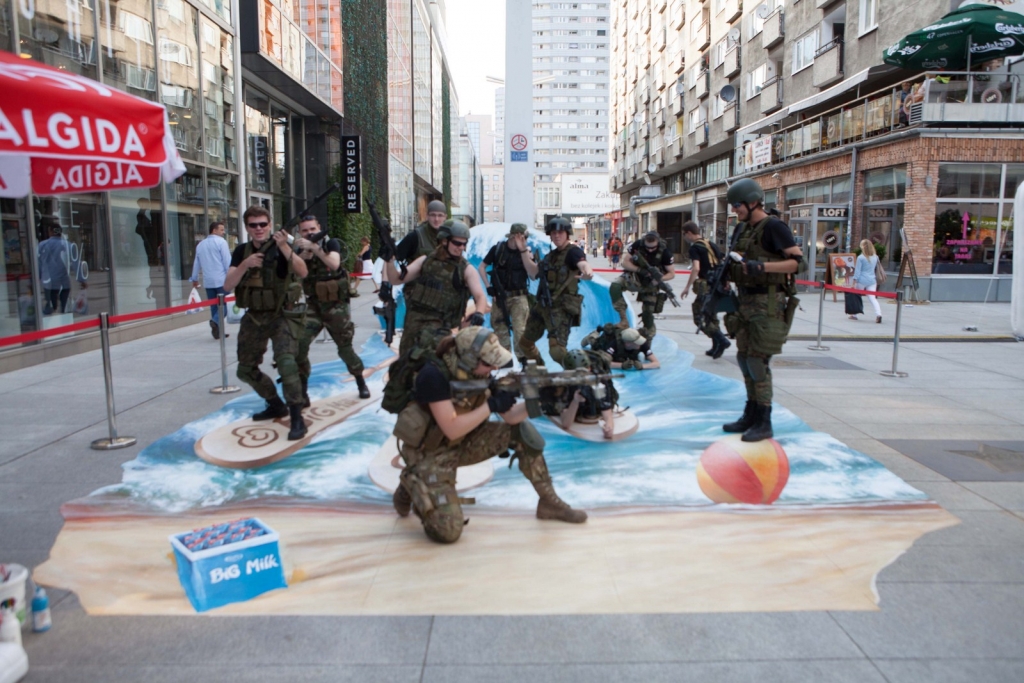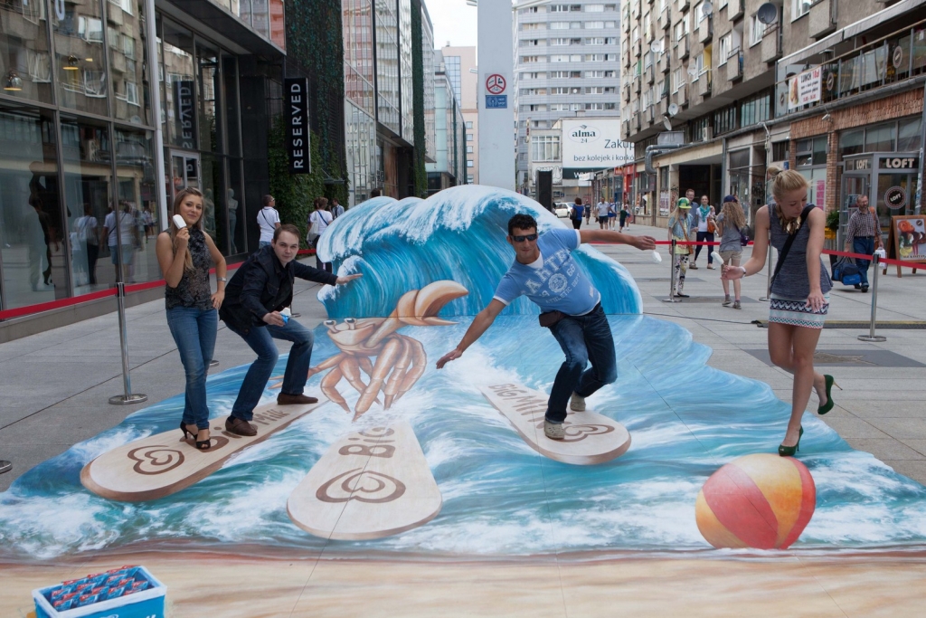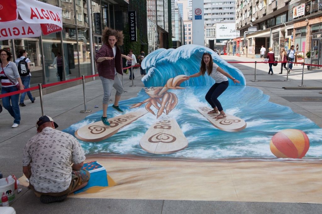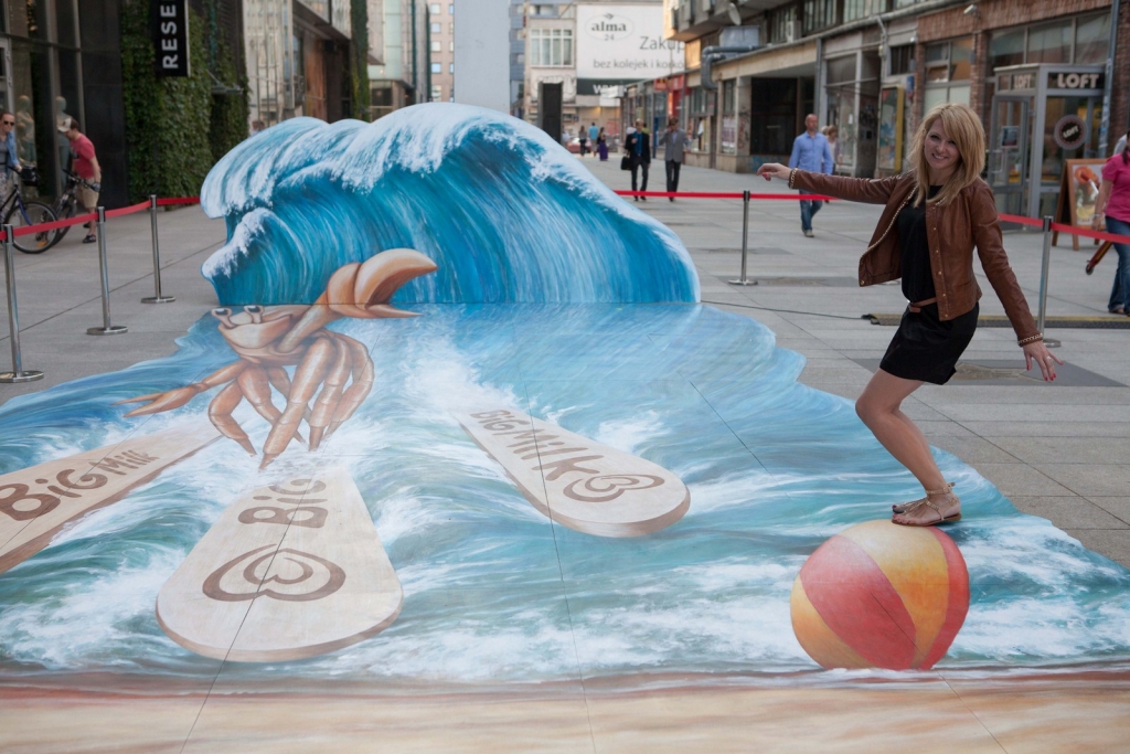 Wakacyjny obraz przedstawiający nowego bohatera kampanii Big Milk – Kraba surfującego po wzburzonych falach został przygotowany w nowatorskiej technologii 3D. Warszawianie chętnie wzięli udział w zabawie i z radością pozowali na tle trójwymiarowego dzieła.