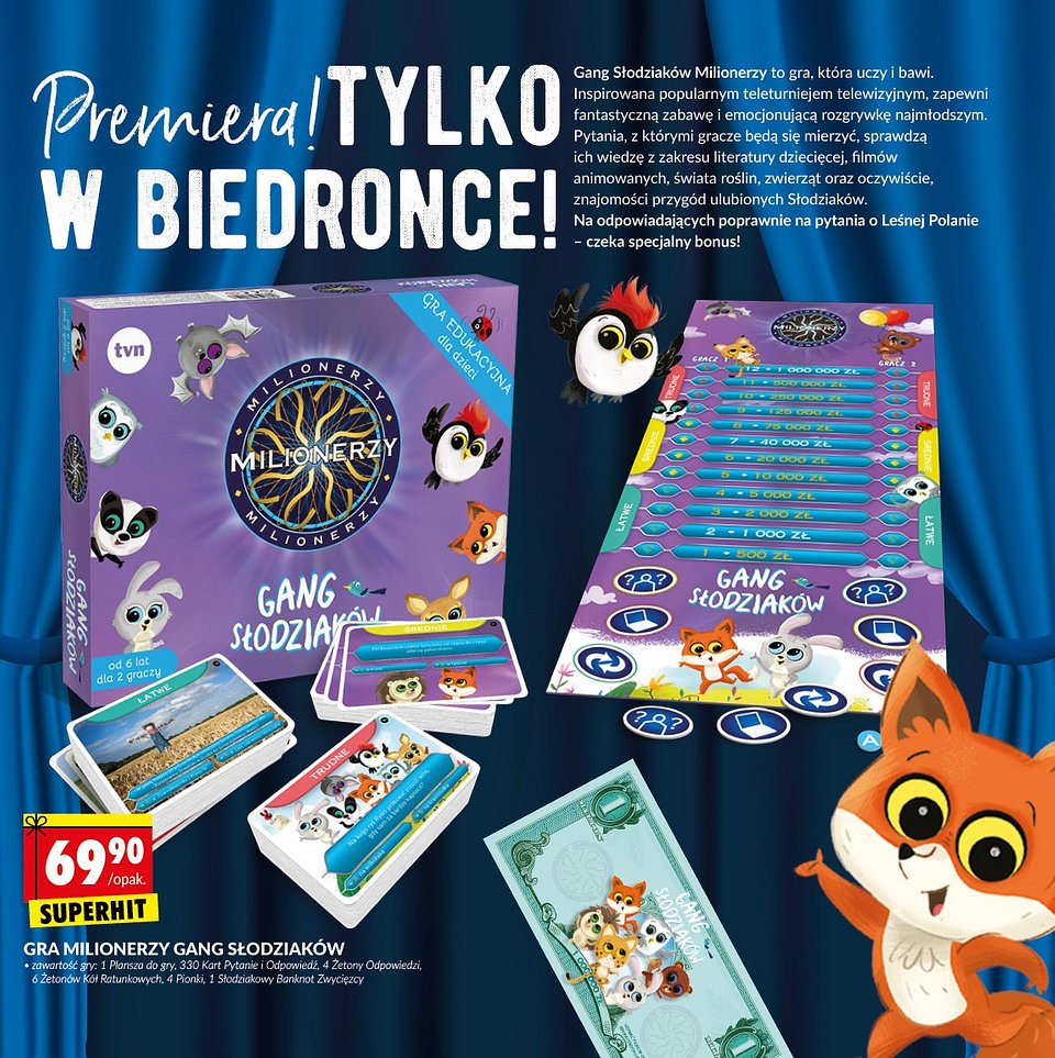– Jak połączyć ważne idee i przekonać do nich dzieci, jednocześnie nie zanudzając ich? Wydaje się, że znaleźliśmy na to idealny sposób! Nasza akcja łączy zabawę z celami edukacyjnymi, takimi jak promowanie czytelnictwa i ekologii. Teraz do oferty wprowadzamy dodatkowo grę Milionerzy i również mamy nadzieję, że Słodziaki z jej pomocą zachęcą dzieci do odkrywania świata – powiedziała Dorota Wrotek-Gut, dyrektor ds. komunikacji marketingowej w sieci Biedronka.