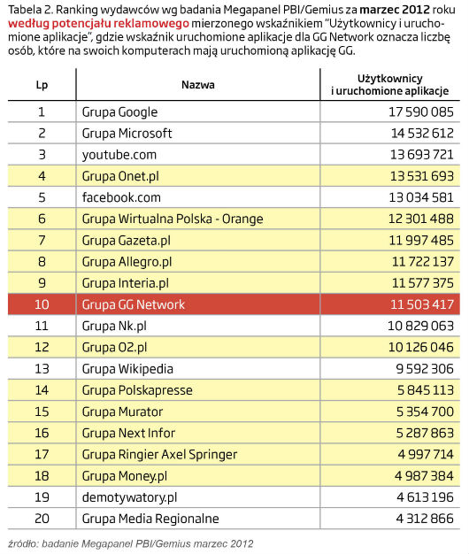 Dzięki wprowadzonym przez PBI zmianom metodologicznym badanie Megapanel pozwala od marca bieżącego roku śledzić wskaźniki uwzględniające również zasięgi aplikacji instalowanych na komputerach. Ma to szczególne znaczenie dla GG Network, wydawcy najpopularniejszego w Polsce komunikatora internetowego GG.