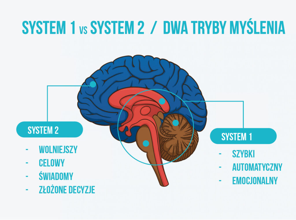 1. „Mózg przodka”: szybki, automatyczny, emocjonalny. Kupuje sok, jogurt, ciastka.