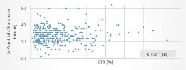 Z badań Nielsena wynika, że kliki i CTR (click through rate) nie przekładają się na korzyści marketingowe (wyniki sprzedaży, wzmocnienie marki i poszerzenie grona odbiorców).
