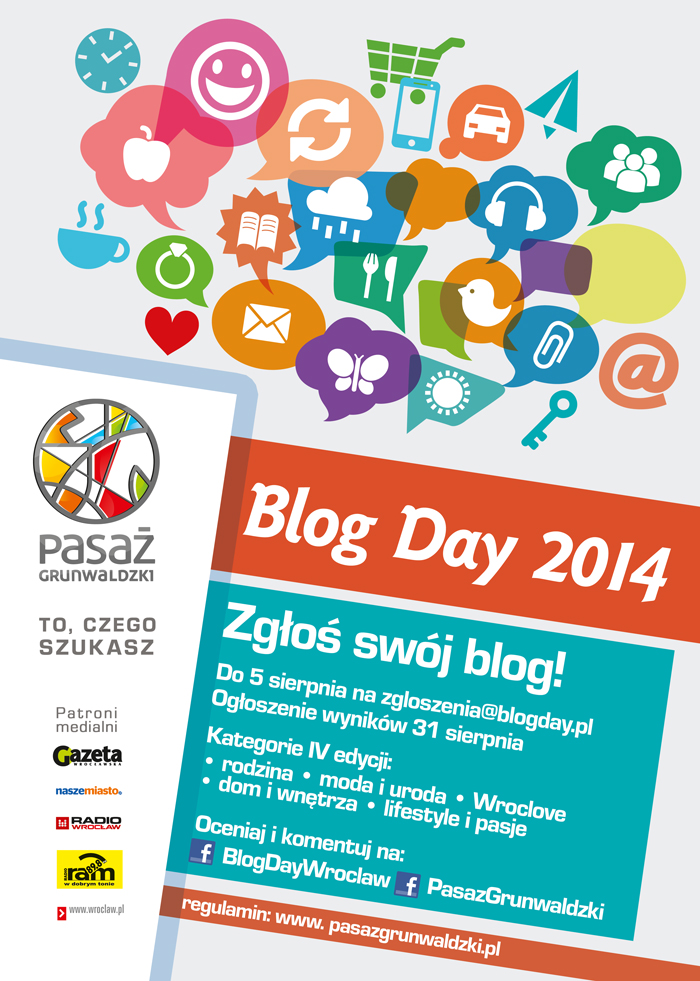 Szczegóły dostępne są na stronie, a przebieg rywalizacji można śledzić na fan page`ach konkursu Blog Day Wrocław i Pasażu Grunwaldzkiego.