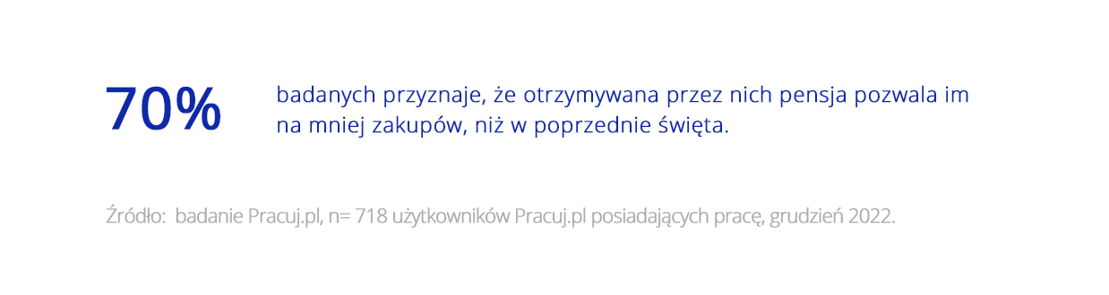 Trudno dziwić się takim postawom – w życiu większości pracowników istotnym czynnikiem stał się negatywny wpływ wysokiej inflacji na zawartość portfela. Dokładnie 7 na 10 badanych Pracuj.pl przyznaje, że otrzymywana przez nich pensja wystarczy na mniej zakupów, niż w poprzednim okresie przedświątecznym.