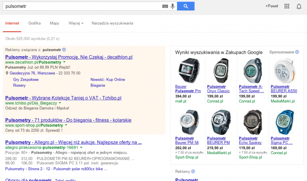 Jak widać na screenie Product Listing Ads wprowadza do wyników wyszukiwania zdjęcie produktu z jego nazwą, ceną oraz informacją o sklepie, z którego pochodzi produkt.