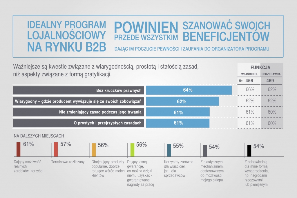 Przedstawiona hierarchia najważniejszych cech idealnego programu sugeruje dużą rolę wcześniejszych doświadczeń i relacji producenta ze sklepem (między innymi w ramach kontaktów z przedstawicielem handlowym), a także wagę profesjonalnego przygotowania i obsługi długoterminowych programów lojalnościowych B2B.