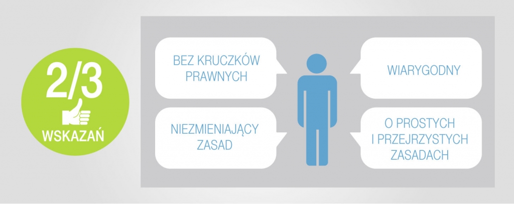 Oznacza to przejrzystość zasad i obowiązków, dotrzymywanie umów czy terminowe rozliczanie zadań, a co za tym idzie – terminowe przekazywanie gratyfikacji. W badaniu ilościowym badani zgadzali się najczęściej z określeniami takimi jak: „bez kruczków prawnych”, „wiarygodny”, „niezmieniający zasad”, „o prostych i przejrzystych zasadach”.
