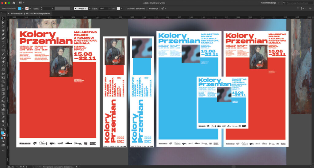 Projekt wystawy czasowej dla PGS w Sopocie. Otwartość kuratorów pozwoliła mi stworzyć materiały promocyjne, które nie bazują bezpośrednio na wystawianych obrazach, a na apli koloru. To odważne podejście było bardzo zauważalne w przestrzeni miasta i takich projektów chciałabym realizować więcej.