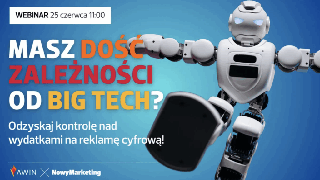 - Dołącz do bezpłatnego webinaru i odkryj, jak wykorzystywać nowe kanały, jak np. influencerów, partnerstwa marek czy partnerów technologicznych, aby odzyskać kontrolę nad reklamą cyfrową. Webinar organizujemy wspólnie z Awin. Wydarzenie odbędzie się online na platformie ClickMeeting. Liczba miejsc ograniczona. >>> Zarejestruj się. Więcej informacji o wydarzeniu na stronie.