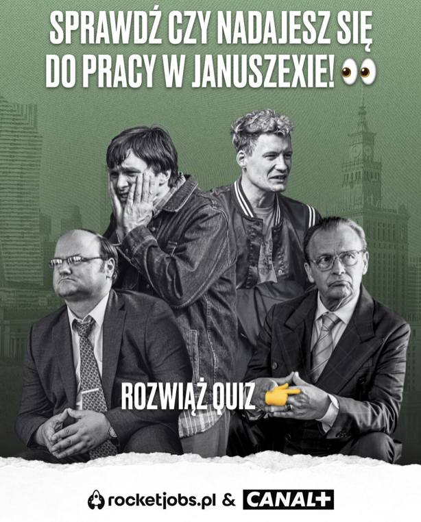 - Z okazji finału serialu „Edukacja XD” dostępnego na Canal+, portal RocketJobs.pl udostępnił specjalny quiz. Rozwiązując go, dowiesz się, czy nadajesz się do pracy w serialowym januszexie, czyli firmie, w której nie ma mowy o płatnych nadgodzinach czy umowie o pracę. >>> Sprawdź.
