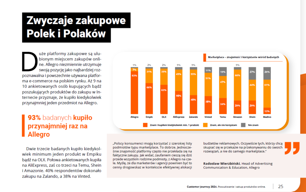 • Allegro oraz agencja badawcza Minds & Roses przygotowały raport „Customer Journey 2024. Poszukiwanie i zakup produktów online”. Zgodnie z badaniem, w ciągu ostatniego roku widać stabilizację nastrojów konsumenckich w kraju. Wydarzenia społeczno-ekonomiczne w Polsce i za granicą nie mają już aż takiego wpływu na decyzje zakupowe jak rok wcześniej (38% vs 47%). Ponadto, ponad połowa badanych nadal kupuje w bardziej przemyślany sposób niż wcześniej oraz stara się wydawać jak najmniej i oszczędzać.