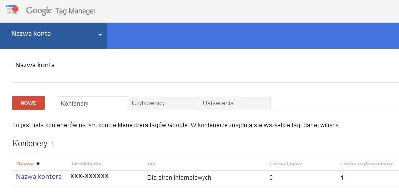 Kontem GTM możemy zarządzać w podobny sposób, jak kontem Google Analytics. To, co jednak warto przemyśleć zanim rozpoczniemy działania to sposób podziału kontenerów. Kontener to miejsce, w którym znajdują się nasze tagi, które dodajemy do witryny. Dzięki zaawansowanym funkcjom możemy podzielić kontenery tak, aby poszczególni partnerzy naszej firmy, nie widzieli swoich tagów i nie mogli modyfikować tagów innych partnerów. Kontener możemy też podzielić per domena lub subdomena, którą zarządzamy. W momencie, gdy dany kontener wywoływany jest w obrębie konkretnej subdomeny, kody wywoływane są właśnie w miejscach implementacji GTM.