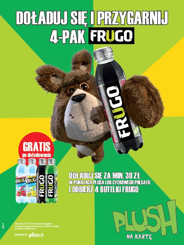 Każdy kto wpadnie do salonu sprzedaży Plusa lub Cyfrowego Polsatu i doładuje swoje konto za min 30 zł otrzyma 4 różne smaki Frugo!
