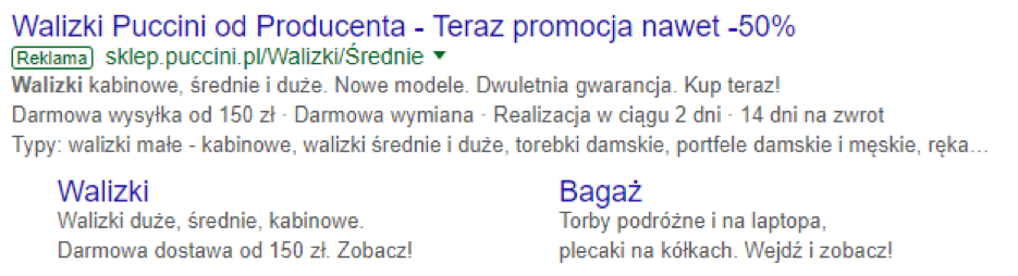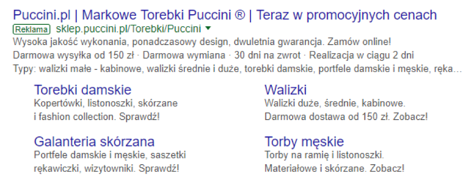 Dla zwiększenia powierzchni reklamowej, stworzenia konkurencyjnych reklam i zwiększenia średniej pozycji w każdej kampanii zostały utworzone dedykowane rozszerzone reklamy tekstowe, które były dostosowywane do prowadzonych działań np. promocji czasowych.