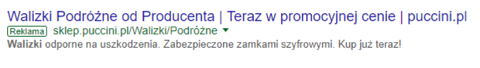 Szacuje się, że w Polsce poczty Gmail używa ponad 5 mln użytkowników. W związku z tym wdrożono kampanie GSP kierowaną na najważniejsze słowa pojawiające się w treści wiadomości e-mail. Związane są z wakacjami, podróżami czy najważniejszymi biurami podróży. Ich celem jest dostarczenie komunikacji promocyjnej dotyczącej kategorii walizek Puccini targetowanej na zainteresowania i tematy związane z biurami podróży czy wakacjami.