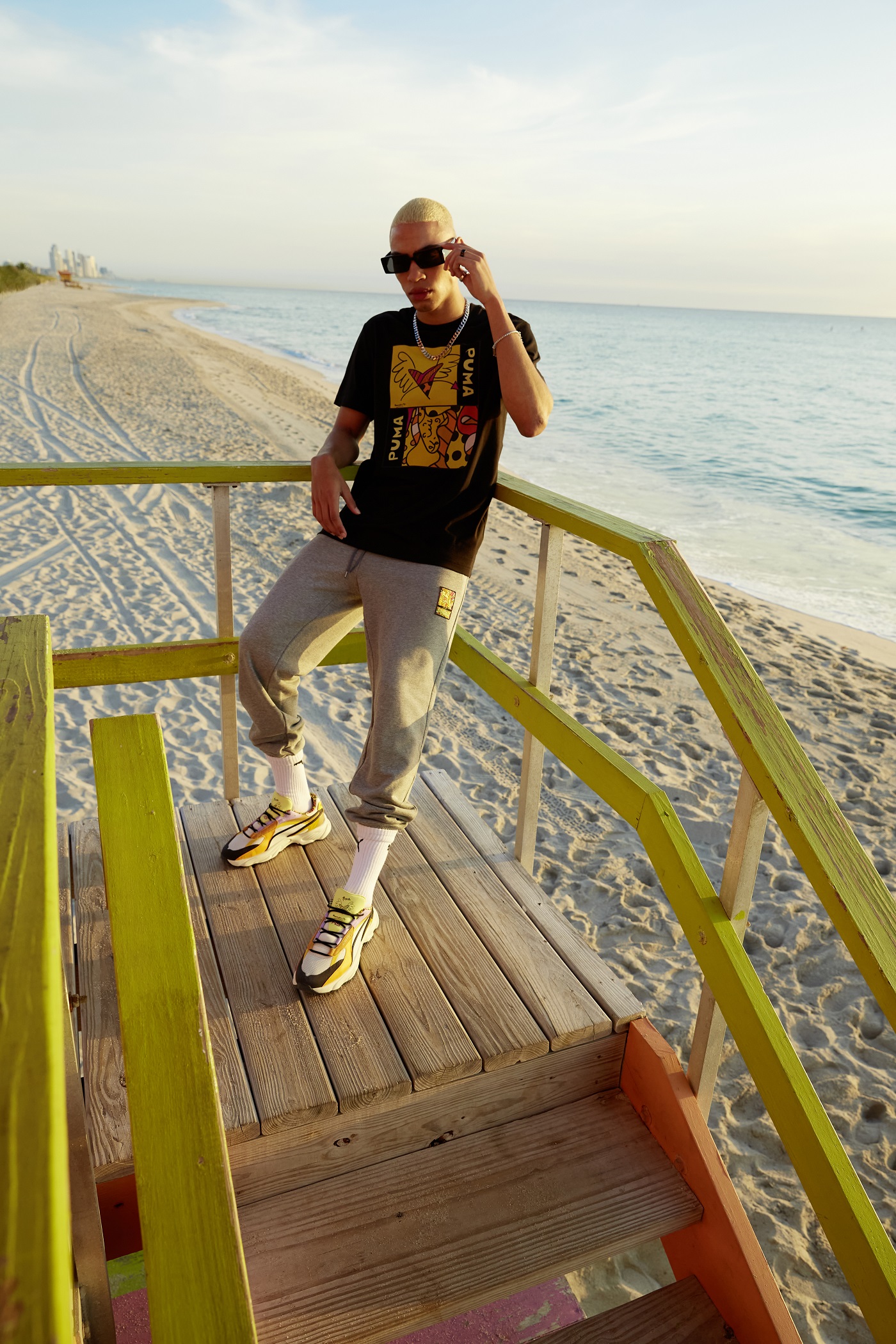 Britto jest założycielem Happy Art Movement. Jego wyjątkową estetykę ukształtował optymistyczny światopogląd, którego z łatwością doszukamy się w najnowszej współpracy z PUMA. Produkty z nowej linii to propozycje dla tych, którzy lubią eksperymentować z kolorami i odważnymi wzorami.