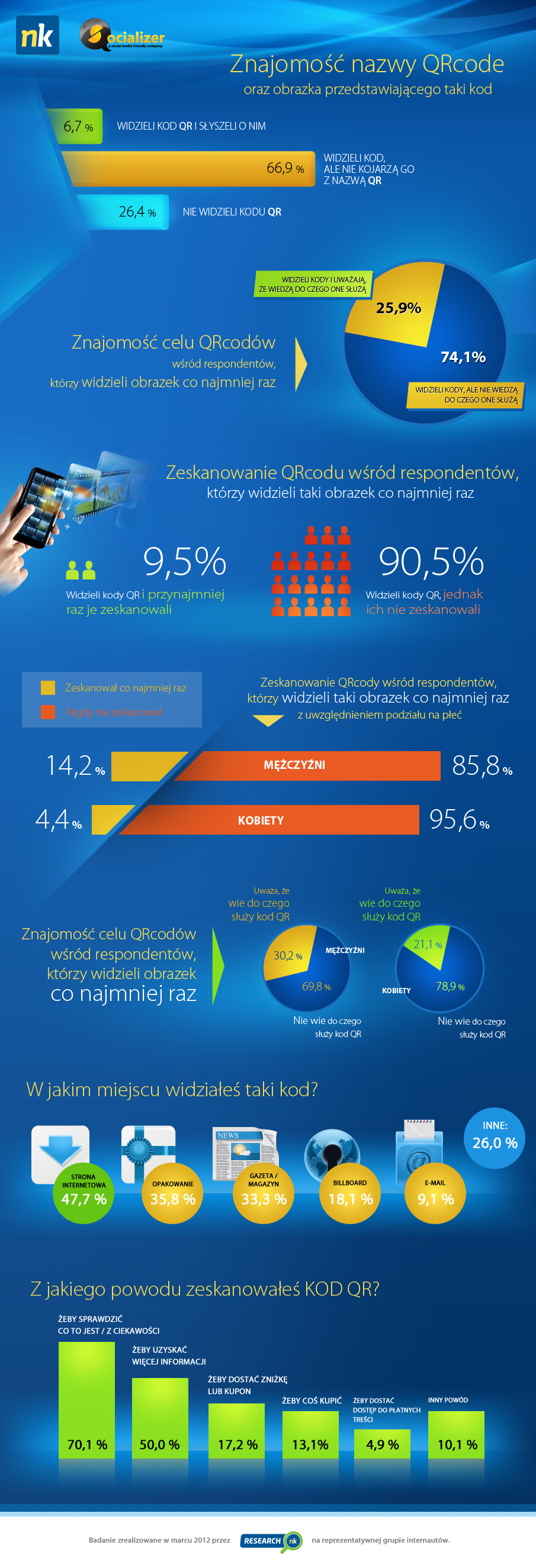 Rośnie liczba osób korzystających ze smartfonów oraz akcji marketingowych prowadzonych w kanałach mobile, np. za pomocą kodów QR. Jednak badania wskazują, że świadomość Polaków w zakresie techniki QR jest wciąż bardzo niska. Reasearch.NK i Socializer prezentują najnowsze dane na ten temat.