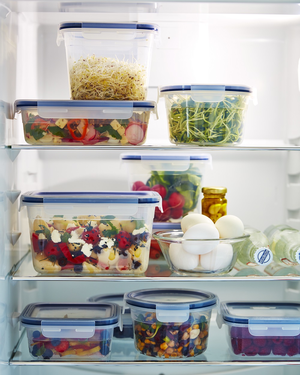 Ograniczaniu odpadów żywnościowych przysłużą się pojemniki z plastiku lub szkła żaroodpornego do przechowywania żywności IKEA 365+. Pojemniki mają trzy rodzaje pokrywek: plastikowe zapinane na szczelne kliknięcie, bambusowe (wersja najbardziej ekologiczna) i silikonowe; mogą stać w lodówkach i zamrażarkach, nadają się do mycia w zmywarkach.