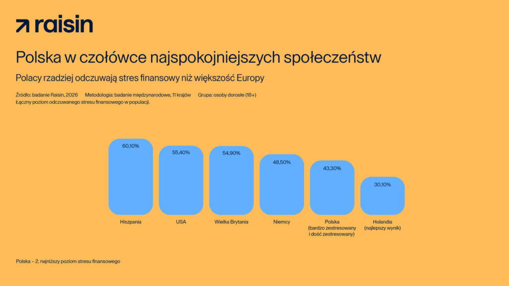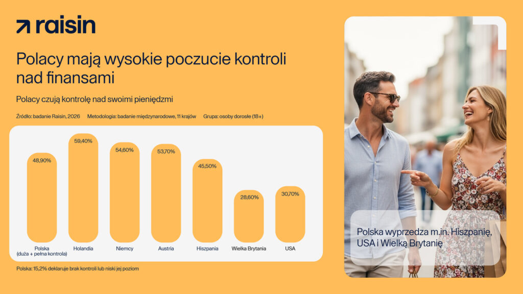 – Jednym z czynników, które mogą to tłumaczyć, jest łatwy dostęp do narzędzi finansowych. Polska należy do najbardziej rozwiniętych rynków bankowości elektronicznej, a rozwiązania cyfrowe upowszechniły się tu wcześniej niż w wielu krajach objętych badaniem. Blisko 20 mln Polaków korzysta z systemu BLIK, a liczba użytkowników bankowości mobilnej cały czas rośnie. Ten stały i bezpośredni dostęp do finansów – w tym wydatków i stanu konta – wzmacnia poczucie kontroli nad pieniędzmi – zauważa Michał Piątek z Raisin.