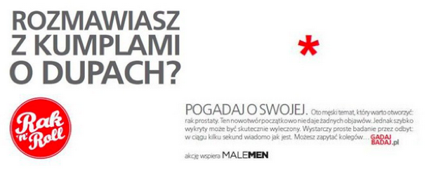 Kolejna kampania, która sprawiła, że o Rak’n’Rollu zrobiło się głośno to akcja zachęcająca mężczyzn do badania prostaty pod hasłem Gadaj * Badaj.