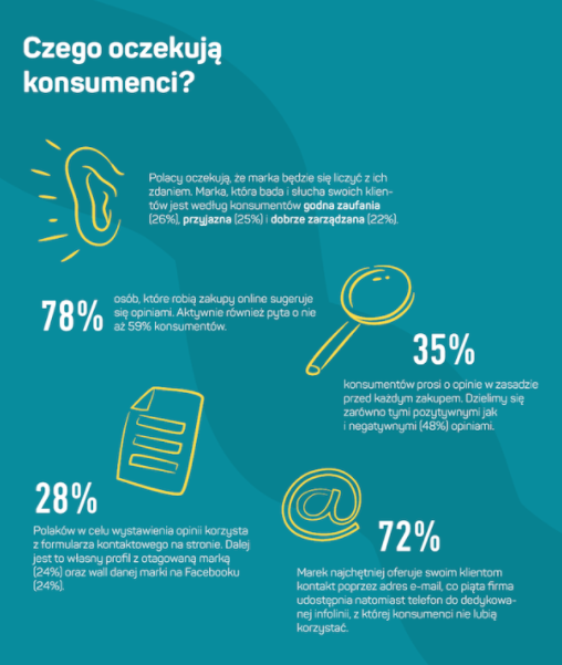 W kontekście dialogu marka-konsument potrzeby tych trzech grup także są różne. Przykładowo, opinie liczą się dla każdej z nich, ale smart-shoppers najchętniej będą ich szukać w dedykowanych serwisach z opiniami, jak booking.com, czy opineo.pl, „zieloni” w social media, a „czerwoni” podobnie – w social media – ale nie czytając opinii na czyichś „wallach”, a raczej aktywnie o nie pytając na swoim. „Czerwoni” i „zieloni” będą też bardziej wylewni, jeśli chodzi o dzielenie się własnym doświadczeniem zakupowym – najchętniej poinformują markę od razu po zakupie, w sklepie, jeśli coś im nie pasuje. „Niebieski” natomiast rzadziej podzieli się opinią, ale jednocześnie częściej odejdzie nieusatysfakcjonowany jakością produktu, ceną bądź obsługą, bez pozostawienia opinii, a więc i niezbędnych wskazówek marce.