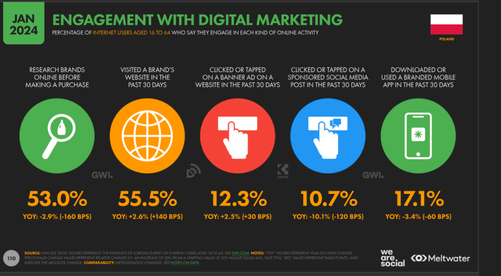 Przeczytaj cały raport „Digital 2024: Poland” poniżej i sprawdź, co jeszcze zmieniło się na Polskim rynku internetowym na początku 2024 roku. Publikacja stanowi wnikliwą analizę świata cyfrowego w naszym kraju.