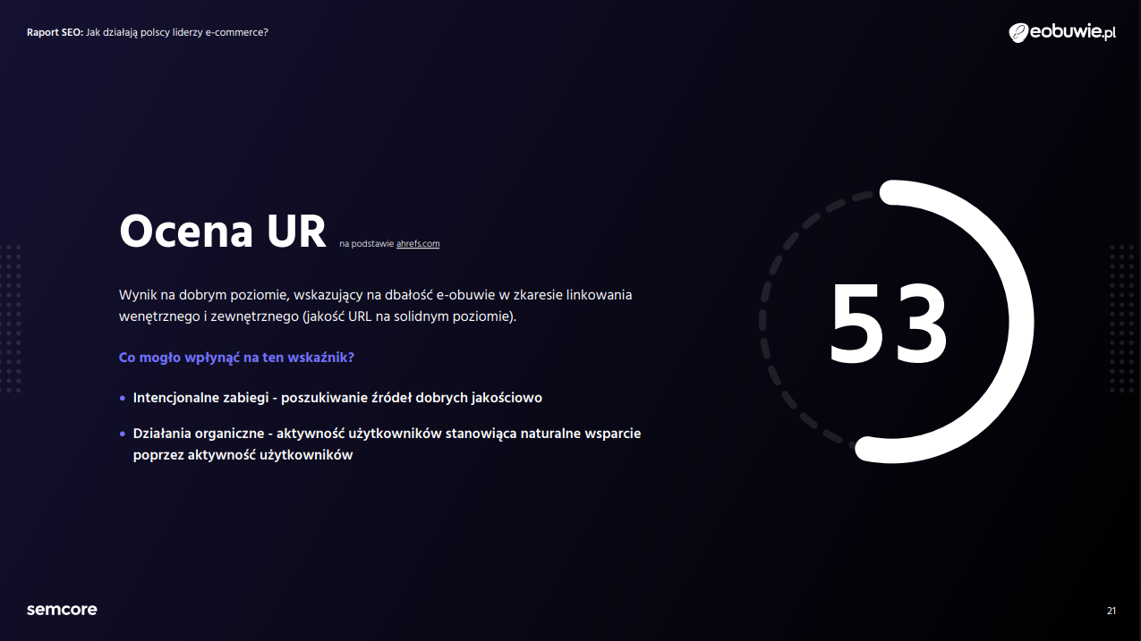 Rynek e-commerce w Polsce prężnie się rozwija, a okres pandemii koronawirusa istotnie przyczynił się do wzrostu tego rozwoju. Coraz więcej firm zakłada e-sklepy i przenosi częściowo bądź w całości sprzedaż do internetu. Jednak w jaki sposób osiągnąć sukces w mocno konkurencyjnej branży e-commerce? Co wpływa na pozycję sklepu? Aby znaleźć odpowiedzi na te i wiele innych pytań, zespół agencji Semcore przez kilka tygodni analizował największe sklepy e-commerce działające na rynku polskim. Efektem tego jest powstały „Raport SEO: Jak działają polscy liderzy e-commerce”, którego celem jest ukazanie, jak najwięksi gracze na polskim rynku e-commerce osiągnęli swoją pozycję i przedstawienie wniosków i wytycznych SEO, które warto wdrożyć we własnym e-sklepie.