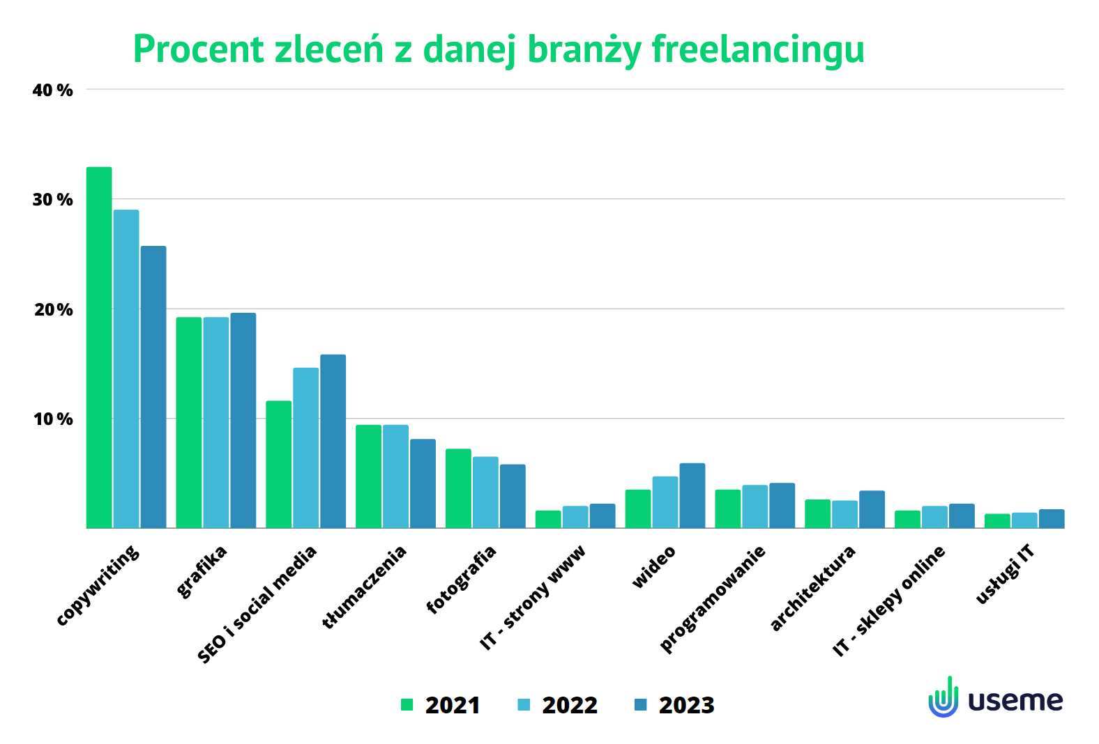 Rynek freelancingu dynamicznie rośnie, ma na to wpływ nie tylko upowszechnienie modelu pracy zdalnej, ale też wzrost popularności współpracy z niezależnymi specjalistami, co wpływa na popyt ich usług. Branżami, w których pojawia się najwięcej zleceń są: copywriting, grafika, SEO i social media. Ponadto z roku na rok rośnie zapotrzebowanie na wykonawców prac związanych z szeroko rozumianym IT.