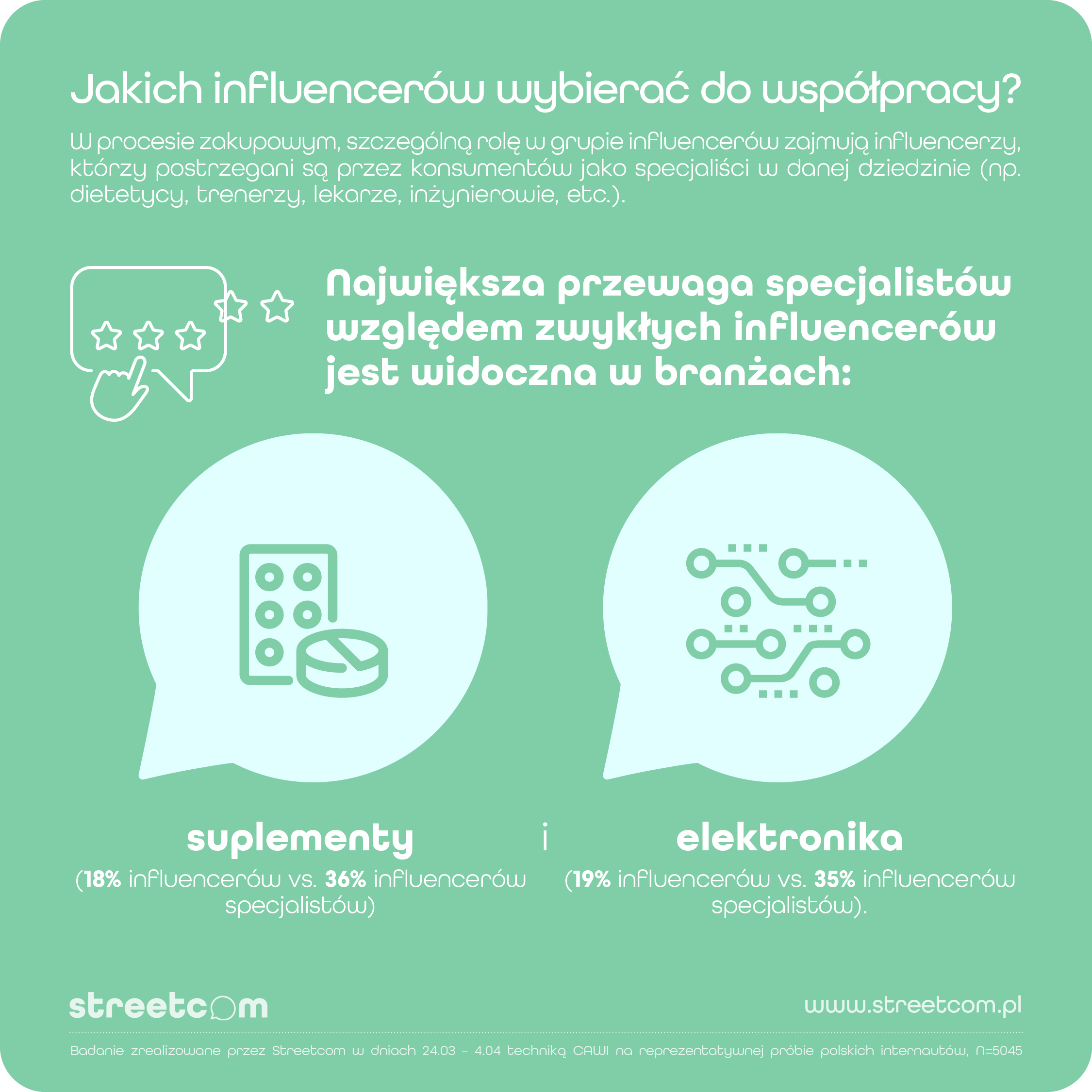 Jak wynika z badania „Alchemia zaufania, czyli jaki rodzaj Influencer Marketingu sprzedaje” zrealizowanego przez agencję Hash.FM by Streetcom treści pochodzące od tego typu influencera dla konsumentów są bardziej wiarygodne i silniej wpływają na ich decyzje zakupowe. Największa przewaga specjalistów względem zwykłych influencerów jest widoczna w branżach: suplementy (18% vs. 36% wskazań) i elektronika (19% vs. 35%).