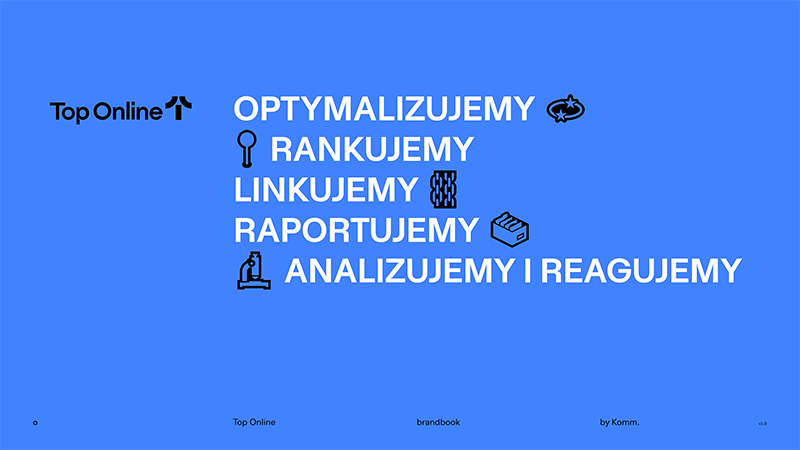 We wcześniejszej identyfikacji wizualnej firmy panował chaos, nie było w niej spójności. Nowy branding ma pomóc w budowaniu nowej, spójnej, ale przede wszystkim unikalnej komunikacji Top Online.
